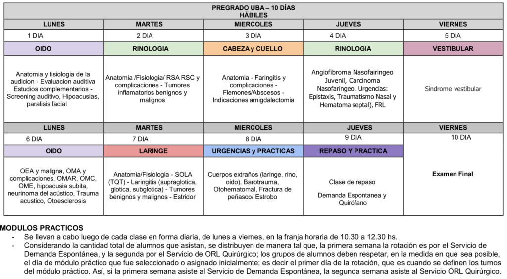 En las rotaciones de pre-grado se cumplen los requerimientos de asistencia y el Programa de Estudios de la Facultad de Ciencias Médicas de la Universidad de Buenos Aires para la asignatura Otorrinolaringología de la Carrera de Medicina. Para ver el Programa Interno de la Fundacion Arauz, haga clic aquí.